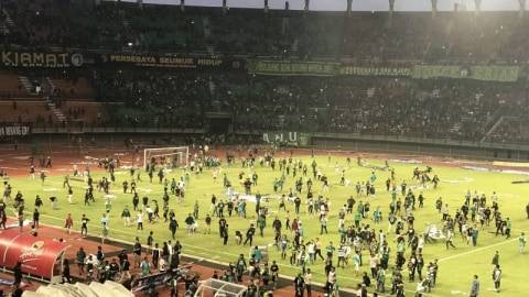 Ditengah tengah pertandaningan pss sleman vs persebaya yang berlangsung pada tanggal 17 februari 2018 di.